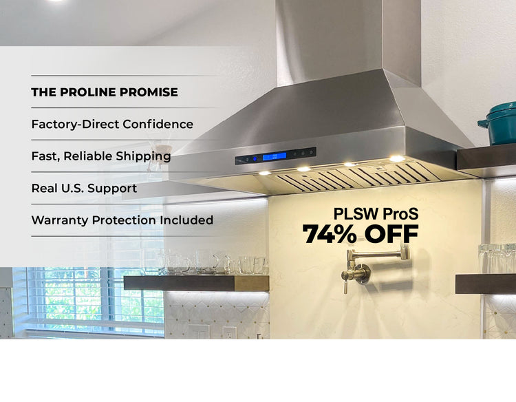 Wall Mounted Range Hood, Convertible to Ductless, 600/1200 CFM, Stainless Steel Finish, Black Finish | Proline PLFW 520